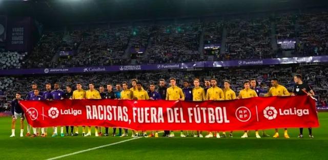 但社会要取得进步,不管推动力来自主动还是被迫,走出清晰的步伐都是至关重要的。西班牙在本次维尼修斯遭遇攻击以后的反应,终于算是迈出了至关重要的一步:维尼修斯的红牌被取消;瓦伦西亚部分看台被关闭;弗洛伦蒂诺亲自出面对球员表达支持;西甲球队拉着“种族主义者滚出足球”的横幅出场;更重要的是,警方开始抓人!这甚至是意大利和英国都没有达到的力度。